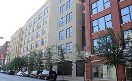 Neighborhood housing management office was carefully designed to integrate into existing North Avenue streetscape.